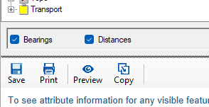- Tick the checkboxes for Bearings and/or Distances at the bottom of the window.